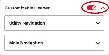To enable the customizable header and footer, click the slider and expand the section using the arrow.